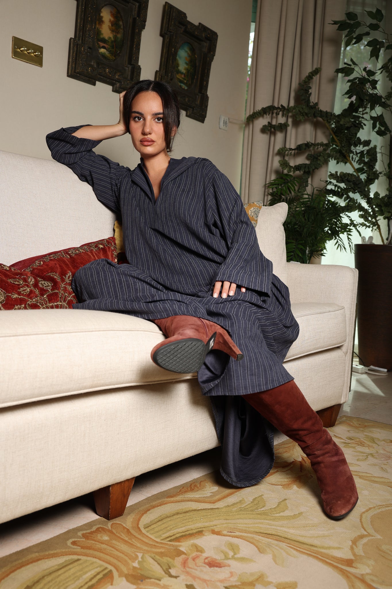 The Soft Stripe Set is a relaxed two-piece with a subtle stripe, featuring a sleeveless base and a lightweight hooded second layer. Designed for effortless layering and everyday wear.